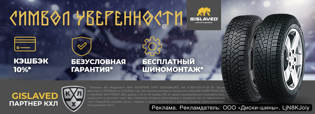 - КЕШБЭК начисляется, при покупке комплекта (от 4-х) зимних шин GISLAVED от 15 до 19 дюймов.